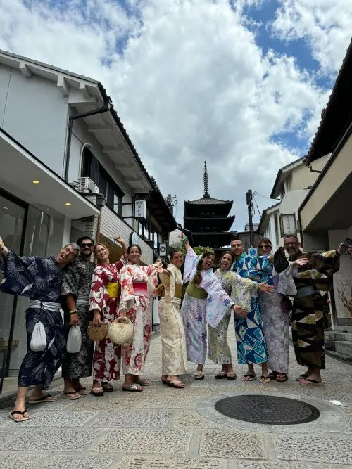 La experiencia incluye vestir kimono y peinado tradicional, y después te dejan pasear con él por las calles históricas de Kioto durante un par de horas, algo que suma muchísimo a la vivencia y ayuda a los viajeros a sumergirse en la cultura.