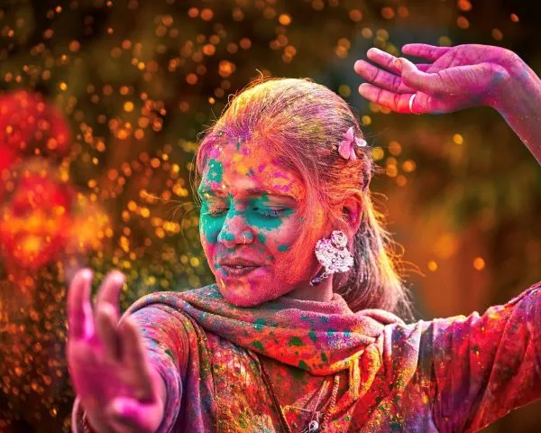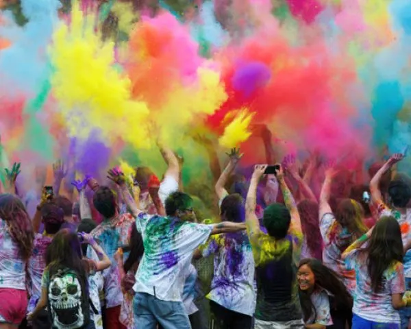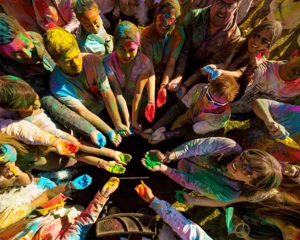 «El festival Holi es una explosión de alegría, un momento en el que el amor y la risa flotan en el aire junto con los colores.»