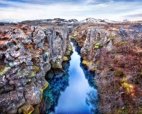 Después, visitarás el Parque Nacional Þingvellir, declarado Patrimonio de la Humanidad por la UNESCO. Aquí podrás caminar entre las placas tectónicas de América del Norte y Eurasia, un lugar único en el mundo. La historia y la belleza natural se mezclan en este lugar que te transportará a un pasado lejano.