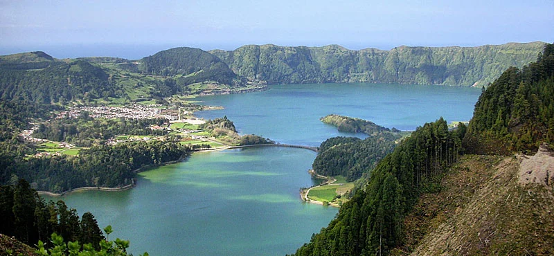 Entre las principales atracciones de Sao Miguel se encuentra una visita a los lagos de Sete Cidades, uno de los lugares más icónicos que ver de la isla. Este lugar es famoso por sus dos lagunas, una de color azul y la otra verde, que se encuentran en el cráter de un antiguo volcán inactivo. La leyenda dice que estos colores representan las lágrimas de dos amantes, una princesa y un pastor, que dieron origen a estas espectaculares lagunas.